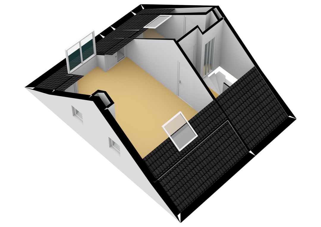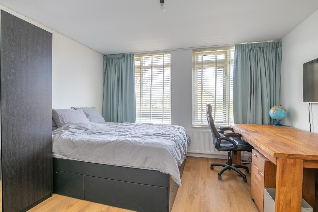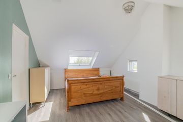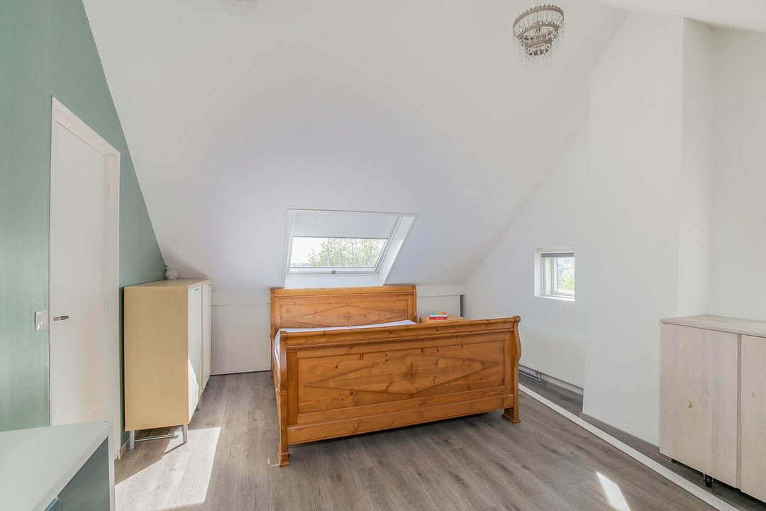 Overloop v.v. opstelling cv-ketel, royale slaapkamer v.v. dakkapel, dakvenster en twee ramen in de zijgevel, extra kamer die uitermate geschikt is als werk-/hobbykamer v.v. dakvenster. De gehele verdieping is v.v. een laminaatvloer.