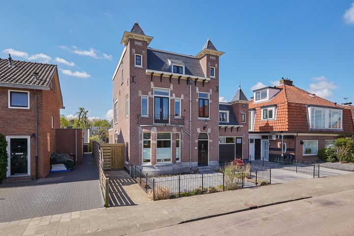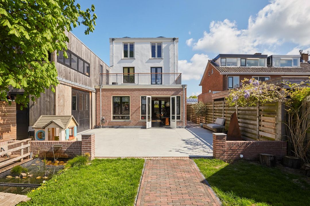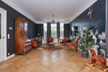 Zeer ruime vrijstaande karakteristieke villa van 365 m2 met aangebouwde stenen multifunctionele ruimte annex kantoorruimte (mogelijkheid tot bedrijfsruimte/praktijkruimte) en oprit, diepe tuin van ca. 30 meter met o.a. vijver, zwembad, overkapping, grasgazon en gelegen op het Zuidwesten.