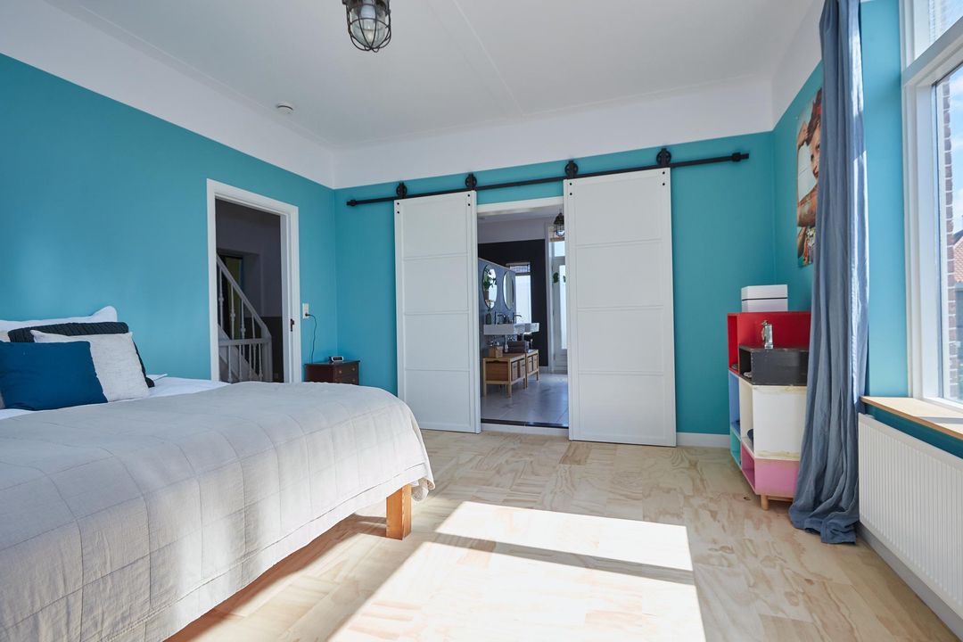 slaapkamer 1: 4.17 x 4.70 royale slaapkamer, gelegen aan de achterzijde v.v. schuifdeuren met toegang tot het royale en luxe badkamer en v.v. openslaande deuren met toegang tot het dakterras en zijraam
