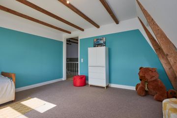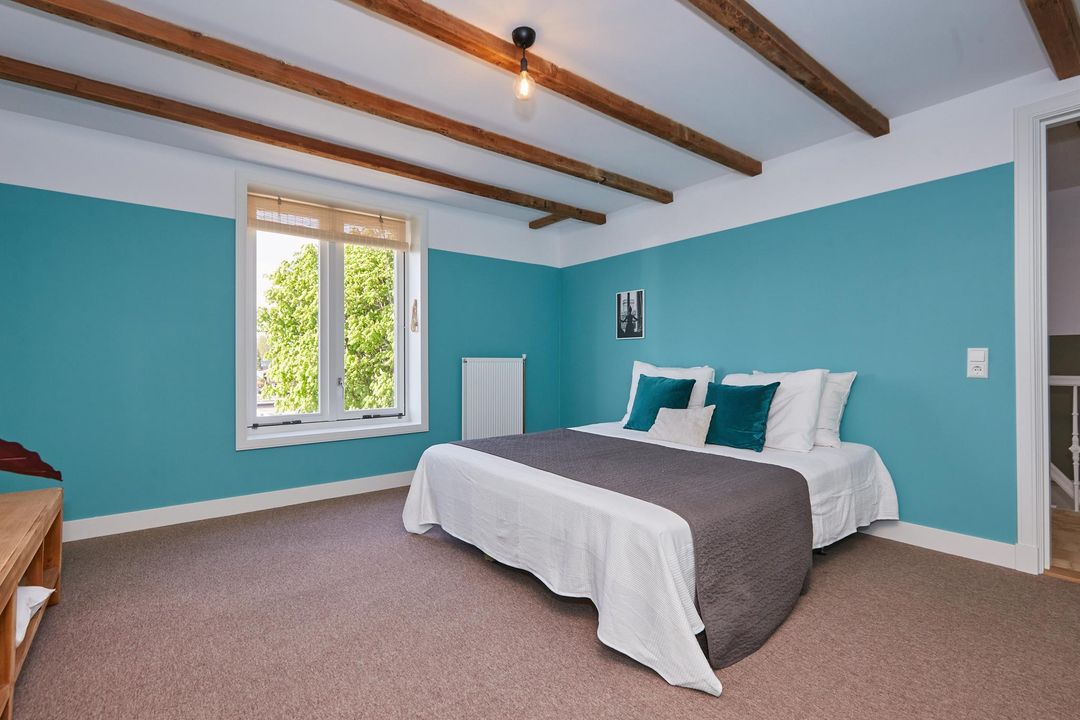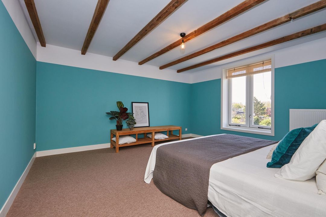 slaapkamer 5: 4.13 x 4.47 royale slaapkamer, gelegen aan de achterzijde met toegang tot het dak middels een dakluik