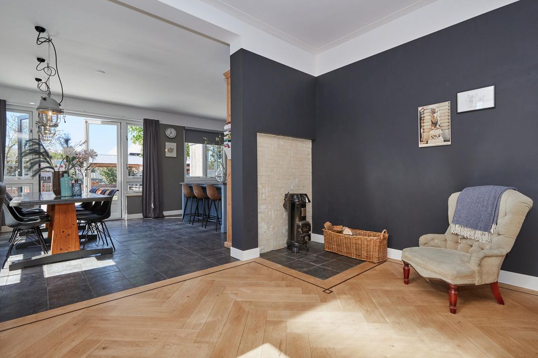 woonkamer: 4.12 x 9.06 royale en lichte woonkamer (type doorzon) v.v. erker en zijraam en mogelijkheid voor open haard