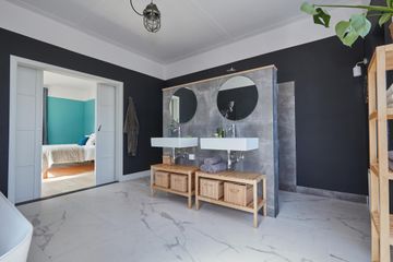 badkamer:	4.19 x 4.16 royale en luxe badkamer, gelegen aan de voorzijde en v.v. ligbad, toilet (wandcloset), dubbele wastafel, inloopdouche en openslaande deuren met toegang tot Frans balkon en zijraam