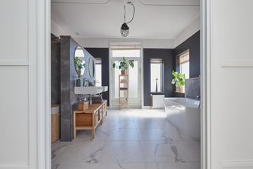 entree/vestibule: 2.48	x 2.04 royale monumentale vestibule v.v. granito vloer en Jugendstil glaspartij