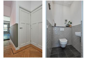 •	Hoge plafonds: woning: bg: 3.00 m, 1e verd.: 2.95 m, 2e verd.: 2.50 m multifunctionele ruimte annex kantoorruimte: bg: 3.00 m, 1e verd.: 2.65 m (onder balk -/- 20 cm);